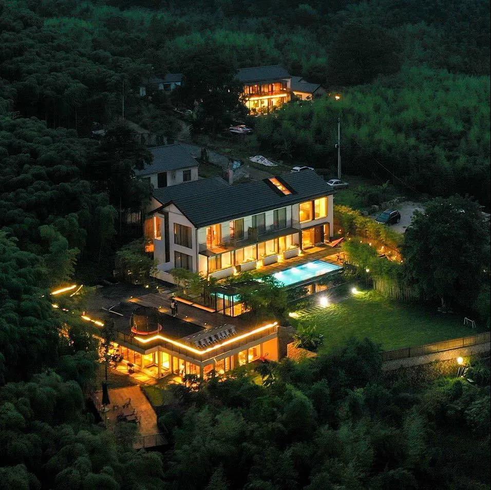 項目占地3300多平方米,共3幢3層,13間房,其中l(wèi)oft7間,每間房都帶落地窗,四海千山之中,獨一處燈火通明。將美好的森林生活樣式融入民宿?!八较?畝莊園,與風(fēng)景融為一體,即使是莫干山也不多見!”整個民宿就藏在一片綠光森林里,靜可觀山閱水、聽風(fēng)賞雨,動可登山徒步、品茗對弈。