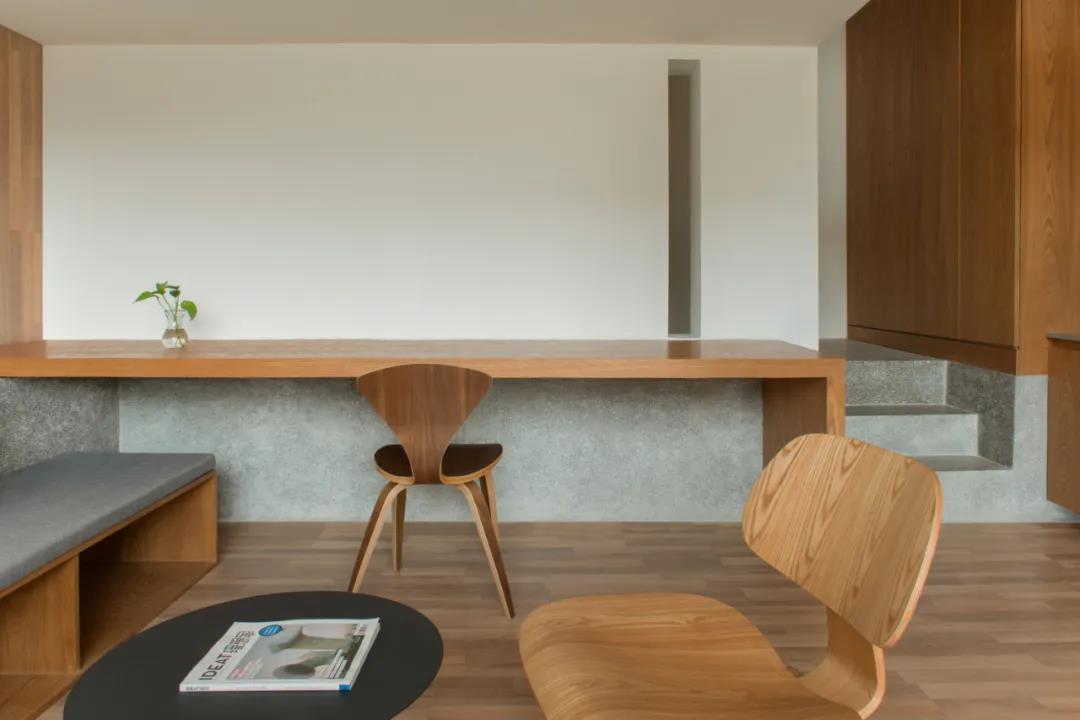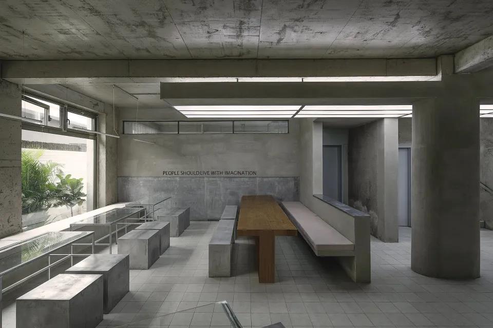 在此次的設(shè)計實踐中,設(shè)計師將空間內(nèi)部墻體原始材料與直接的空間塑造手法相結(jié)合,希望可以為建筑“白開水”似的內(nèi)部空間注入靈魂,并同已有建筑產(chǎn)生強(qiáng)烈的對話關(guān)系,這種對話不只是建筑與空間之間的,也是人與人之間的。