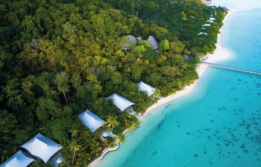 室外無邊泳池面朝大海,從這里可以遠眺周圍其他島嶼。別墅更配有私人泳池,四周被密林包圍擁有極高的私密度。