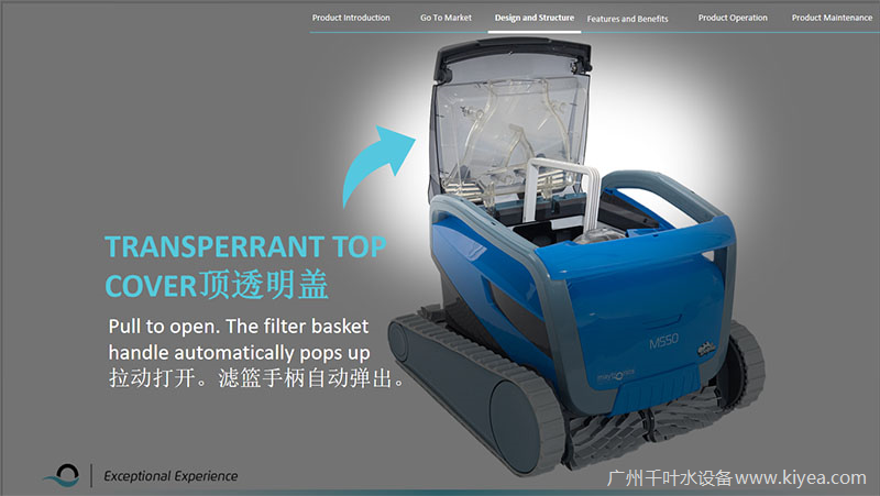 該泳池吸污機過濾籃設計更加方便易用,日常清理輕松便捷。透明頂蓋的獨特設計,讓用戶可以隨時方便地觀察過濾籃內(nèi)的狀態(tài),及時清理,確保吸污機始終保持良好工作狀態(tài)。