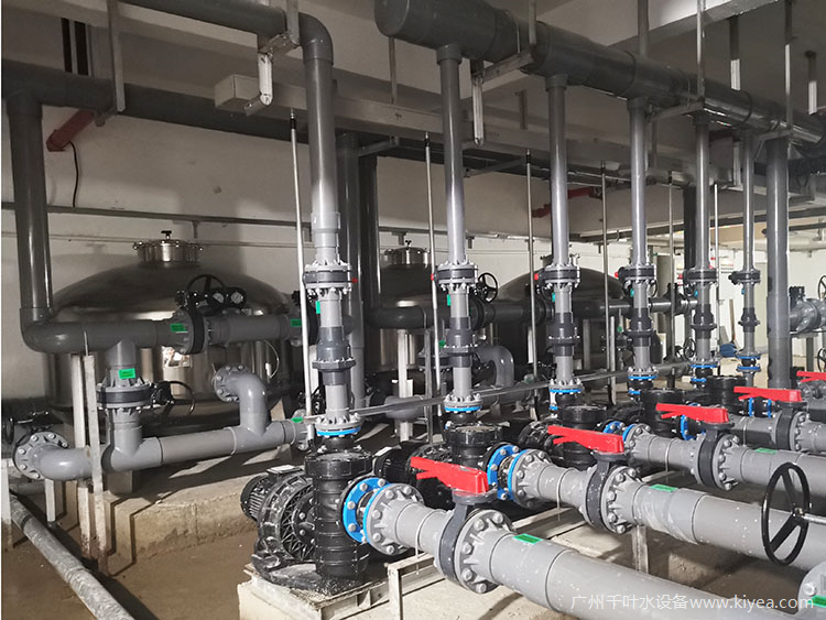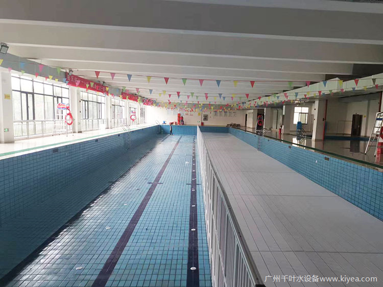 以益陽某全民健身中心游泳館為例,其全套泳池設(shè)備均由廣州千葉提供,其中包括RAYKEN瑞凱品牌的泳池水處理設(shè)備,如泳池水泵、不銹鋼過濾砂缸、中壓紫外線殺菌器、投藥泵、水質(zhì)監(jiān)控儀、空氣源泳池恒溫熱泵、三集一體除濕熱泵等。