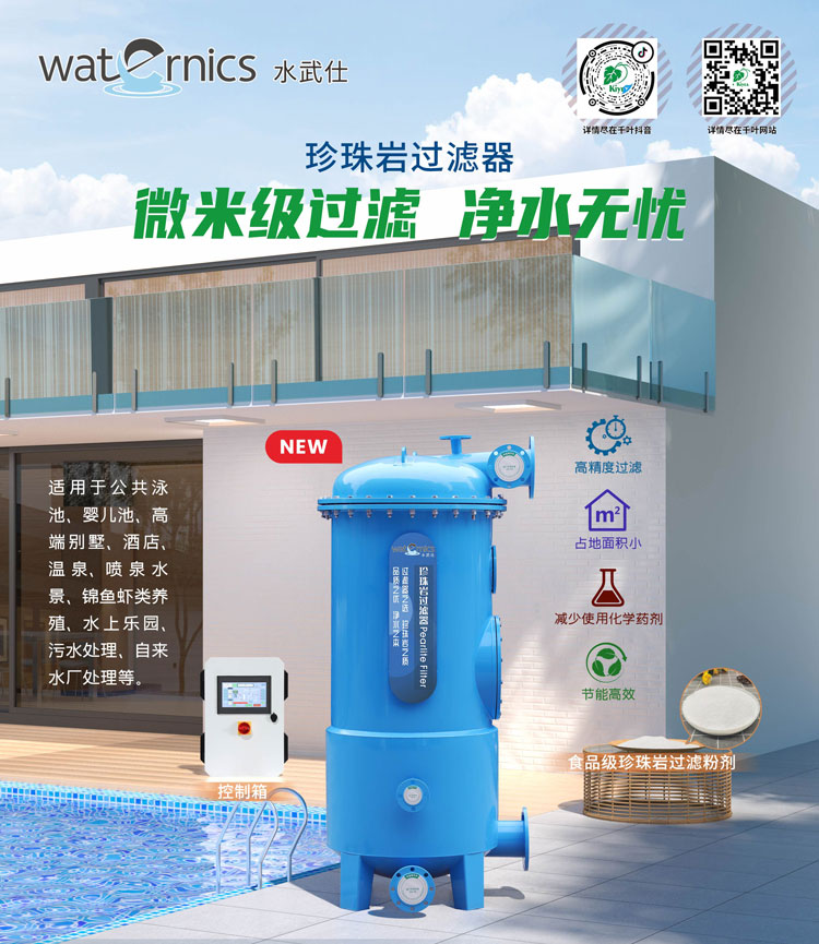 資料顯示,在關(guān)鍵的循環(huán)過濾環(huán)節(jié),廣州千葉選用了AQUA愛克循環(huán)水泵與Waternics水武仕珍珠巖過濾器。前者搭載4極電機(jī),1450rmp轉(zhuǎn)速下運(yùn)行噪音比普通水泵低 10dB以上,且同功率下流量翻倍,節(jié)能50%;后者以天然珍珠巖粉末為介質(zhì),實(shí)現(xiàn)1微米級高精度過濾(人類頭發(fā)直徑約60微米),對大腸桿菌、藻類等微生物去除率超99.5%,濁度低至0.1,出水指標(biāo)遠(yuǎn)遠(yuǎn)高于國家標(biāo)準(zhǔn)。