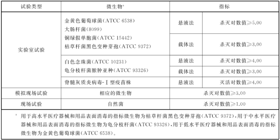 消毒物體表面時(shí)殺滅微生物指標(biāo)