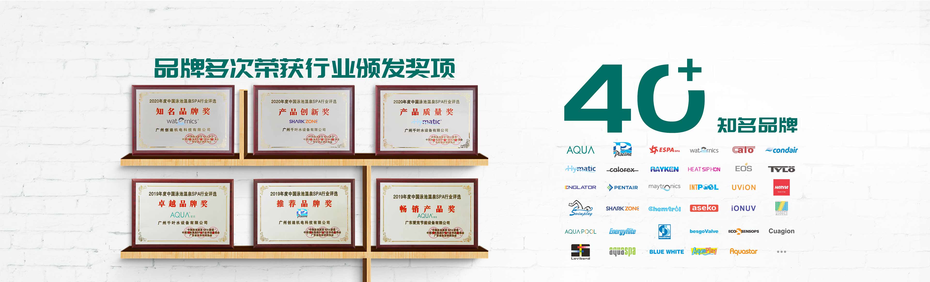 泳池品牌AQUA愛克、水武仕waternics、Hymatic西美克、Piscine碧池、Swimplay斯維普、RAYKEN瑞凱、SHARK ZONE鯊魚、Englator因萊特、Calo卡羅、Aquastar、Aquaspa、aquapool、iONUV、Cuagion等。Maytronics海豚、ESPA亞士霸、Heatsiphon熱沙龍、Calorex加路力士、aseko艾斯克、Pentair濱特爾、Aquaplay雅普、EnergyRite洛克、Chemtrol 衛(wèi)星、Lovibond羅維邦、aquasmart水精靈、besgoValve貝斯克、BLUE WHITE藍(lán)白、INTPOOL因特普、PROZONE衛(wèi)士、Ecosensops鷹牌等。